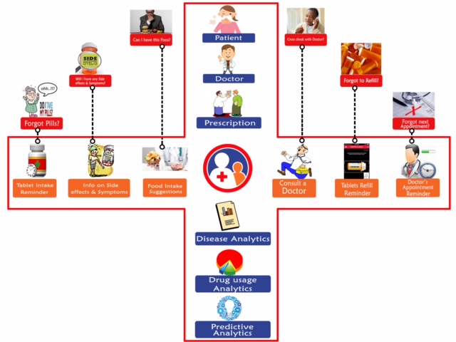 Our health companiondigitalizes the patient prescription to remind him of the medication course. It providesawareness about side effects and symptoms, dietsuggestions and remindsthe user about tablet refills. The user can consult a doctor through our app, and we also remind him on the next doctor appointment.